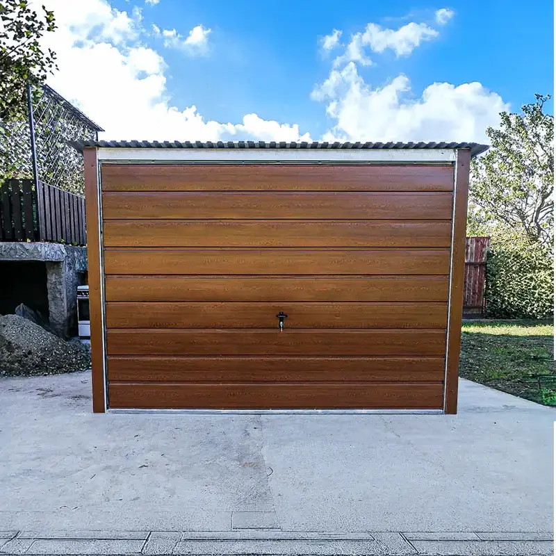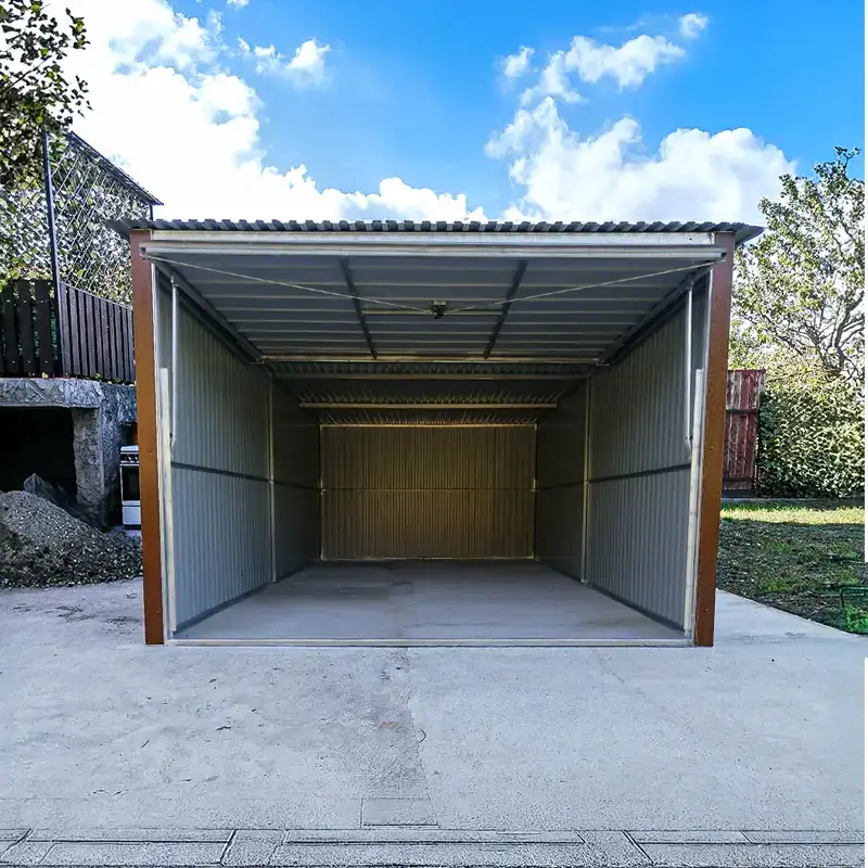 - Kompaktní velikost 3×5 m – ideální pro osobní automobil, pro uložení zahradní techniky (sekačky), rekreačního vybavení (kola, koloběžky, skútry).